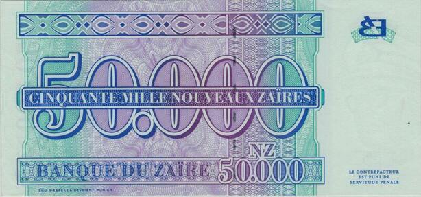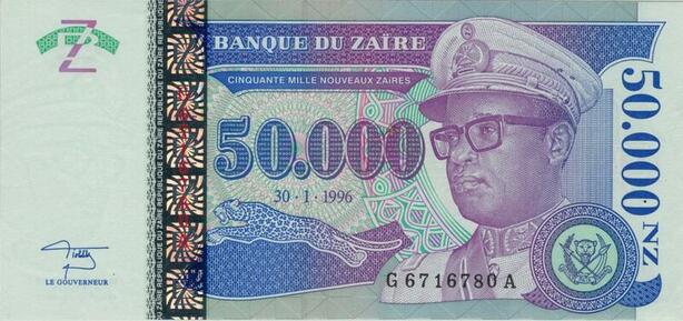 Banknote Zaire Congo 50000 Nouveaux Zairs Mobutu Seko 1993 UNC