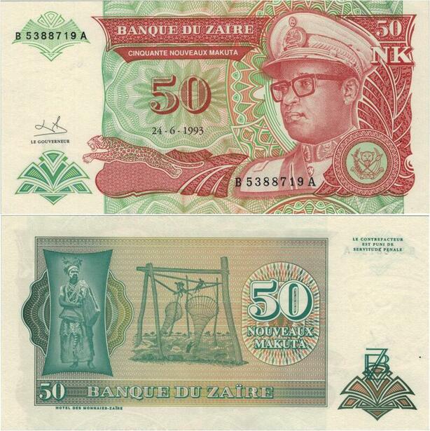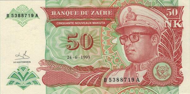 Banknote Zaire Congo 50 Nouveaux Makuta Mobutu Seko 1993 UNC -> Offer
