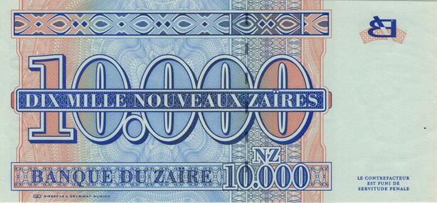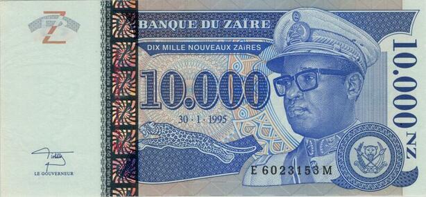 Banknote Zaire Congo 10000 Nouveaux Zaires Mobutu Seko 1995 UNC