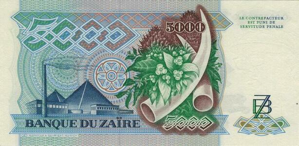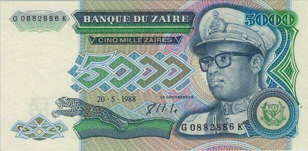 Banknote Zaire Congo 5000 Zaires Mobutu Sese Seko 1988 UNC
