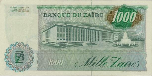 Banknote Zaire Congo 1000 Zaires Mobutu Sese Seko 1985 UNC
