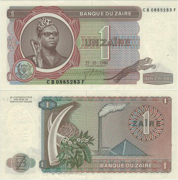 Banknote Zaire Congo 1 Zaire Mobutu Sese Seko 1980 UNC -> Make offer