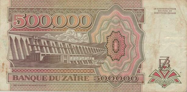 Banknote Zaire Congo 500000 Zaires Mobutu Sese Seko 1992