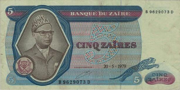 Banknote Zaire Congo 5 Zaires Mobutu Sese Seko 1979 -> Make offer