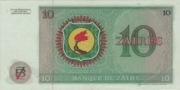 Banknote Zaire Congo 10 Zaires Mobutu Sese Seko 1979 -> Make offer