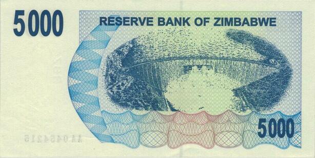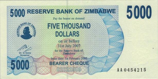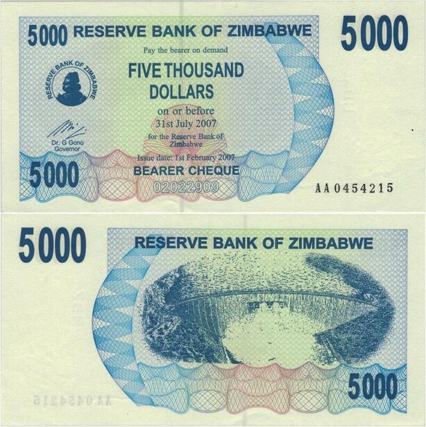 Banknote Zimbabwe 5000 Dollars 2007 UNC -> Make offer