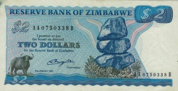Banknote Zimbabwe 2 Dollars 1980 AU -> Make offer