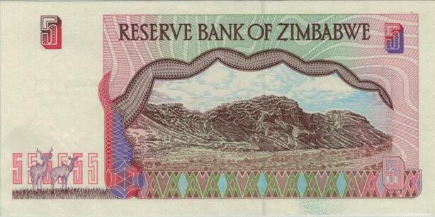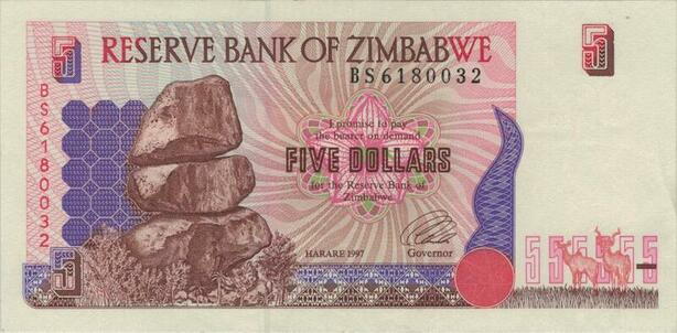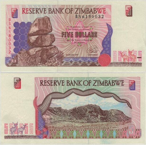 Banknote Zimbabwe 5 Dollars 1997 UNC -> Make offer