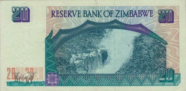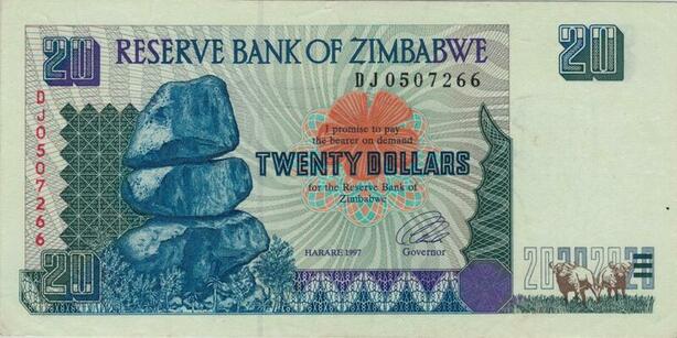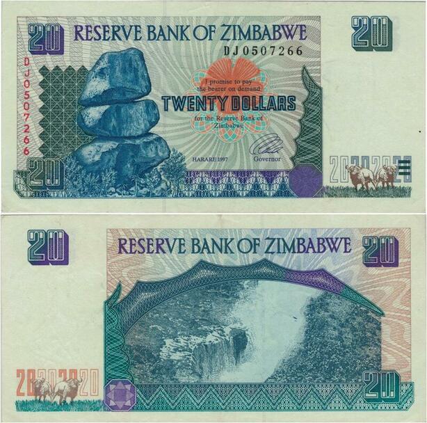 Banknote Zimbabwe 20 Dollars 1997 UNC -> Make offer