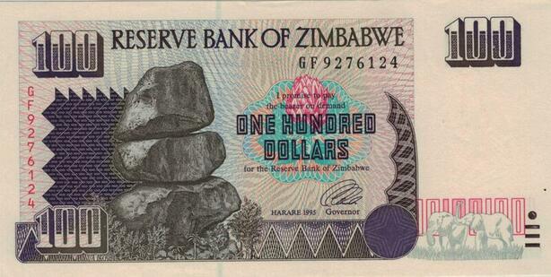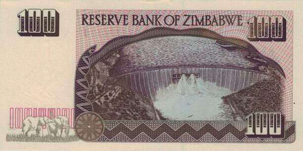 Banknote Zimbabwe 100 Dollars 1995 UNC -> Make offer