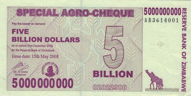 Banknote Zimbabwe 5 Milliards Dollars 2008 UNC -> Make offer