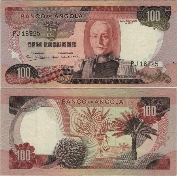 Banknote Angola 100 Escudos Marechal Carmona 1972 UNC