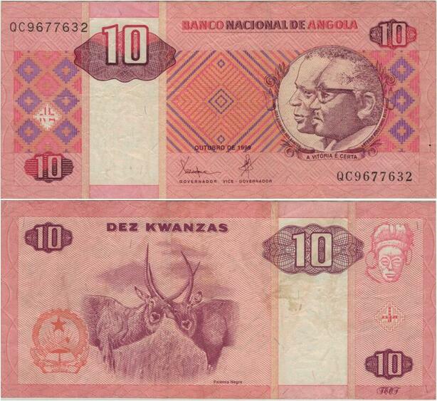 Banknote Angola 10 Kwanzas José dos Santos & Agostinho Neto 1998