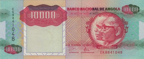 Banknote Angola 10000 Kwanzas José dos Santos & Agostinho Neto 1991