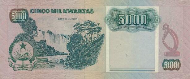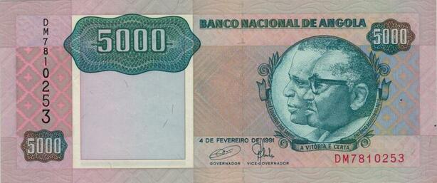 Banknote Angola 5000 Kwanzas José dos Santos & Agostinho Neto 1991 UNC