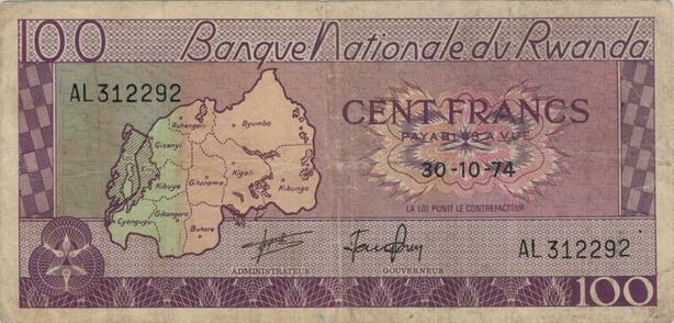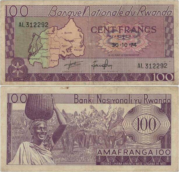 Banknote Rwanda 100 Francs 1974 -> Make offer