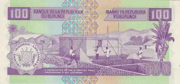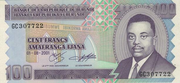 Banknote Burundi 100 Francs Prince Rwagasore 2001 UNC