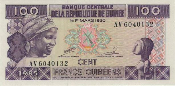 Banknote Guinea 100 Francs 1960 UNC -> Make offer