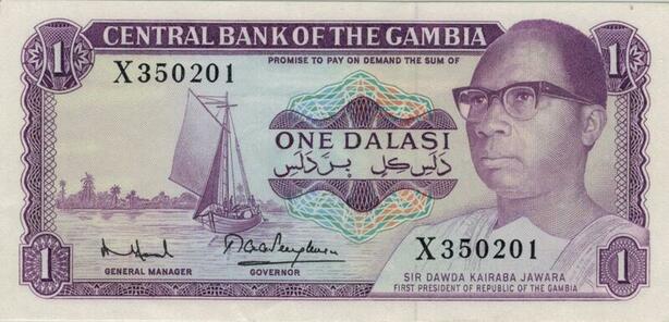Banknote The Gambia 1 Dalasi President D. Kairaba Jawara 1971 UNC