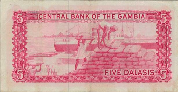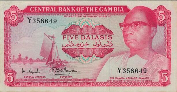 Banknote The Gambia 5 Dalasis President D. Kairaba Jawara 1972
