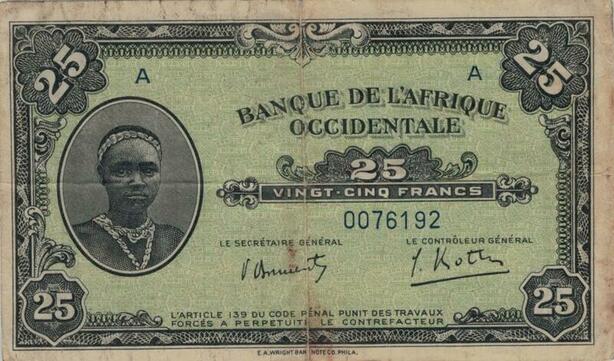Banknote French West Africa 25 Francs 1942 -> Make offer