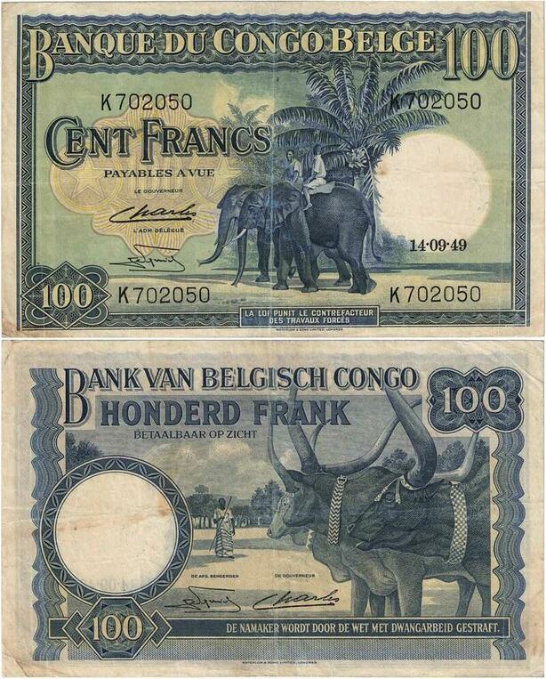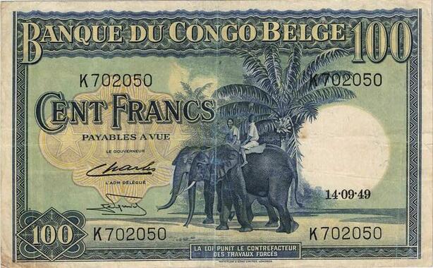 Q1642 Rare Banknote Congo Belge Rwanda-Urundi 100 Francs Elephant 1949 >Offer