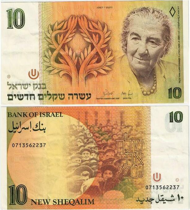 Q1653 Banknote Israel 10 New Sheqalim Golda Meir 1987 AU-> Make offer