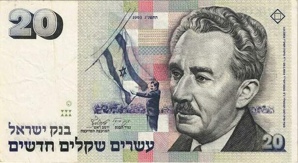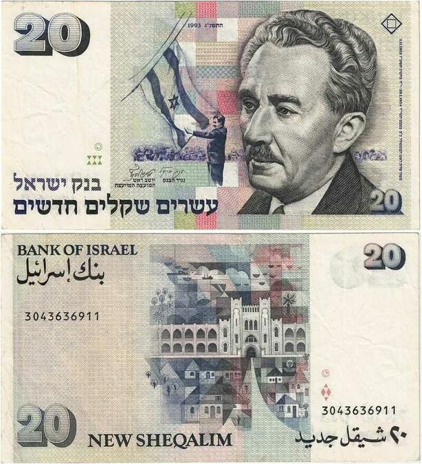 Q1654 Banknote Israel 20 New Sheqalim Moshe Sharett 1993 -> Make offer
