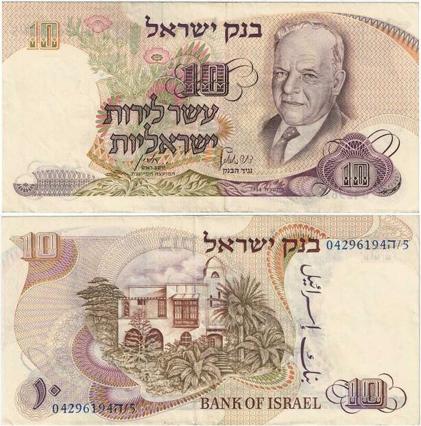 Q1662 Banknote Israel 10 Lirot Hatim Nahman Bialik 1968 -> Make offer