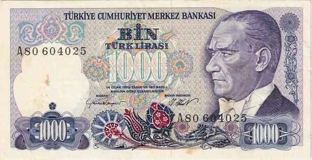Q1684 Banknote Turkey 1000 Lira Mustafa Kemal Atatürk & Mehmed II 1986