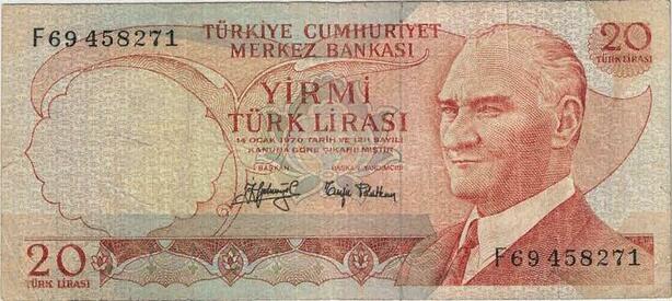 Q1687 Banknote Turkey 20 Lirasi Mustafa Kemal Atatürk 1970 -> Make offer