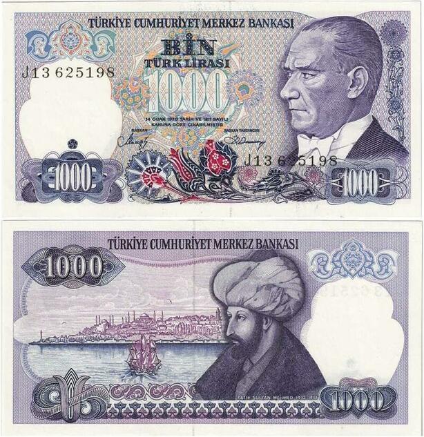 Q1693 Banknote Turkey 1000 Lira Mustafa Kemal Atatürk Mehmed II 1986 -> M offer