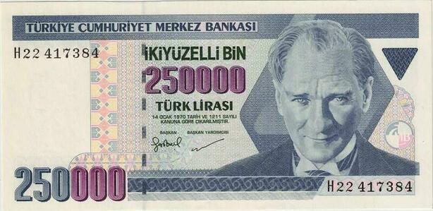 Q1702 Banknote Turkey 250000 Lira Mustafa Kemal Atatürk 1998 UNC -> Make offer