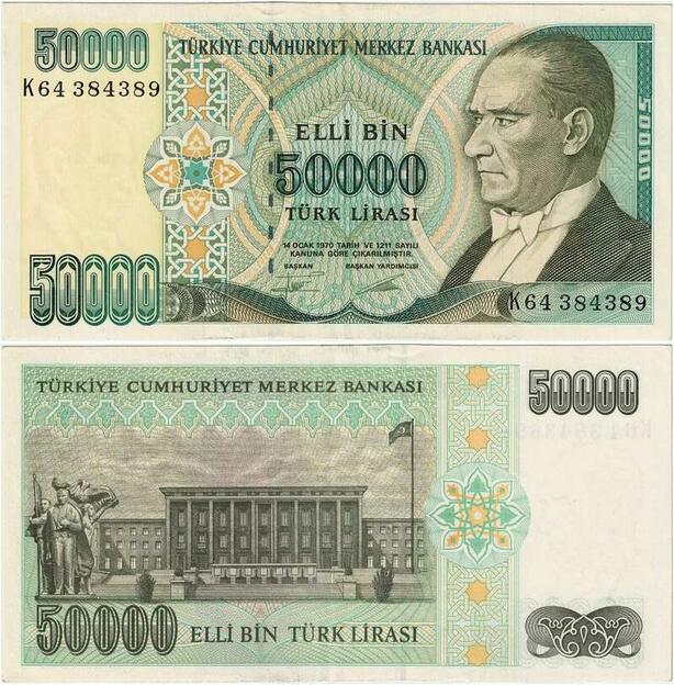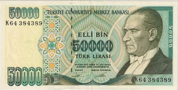 Q1704 Banknote Turkey 50000 Lira Mustafa Kemal Atatürk 1995 AU -> Make offer