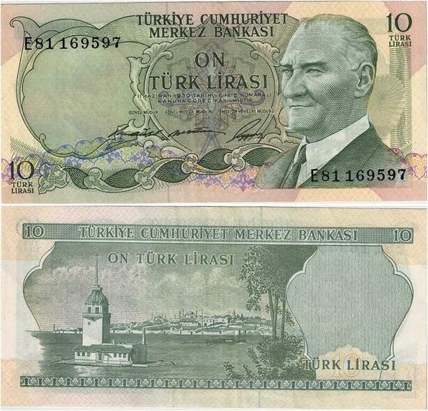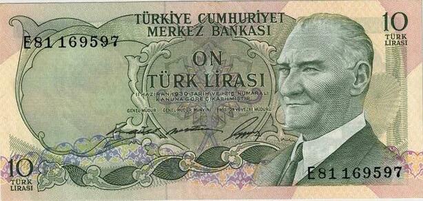 Q1710 Banknote Turkey 10 Lira Mustafa Kemal Atatürk 1966 AU -> M offer
