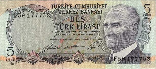 Q1714 Banknote Turkey 5 Lira Mustafa Kemal Atatürk 1968 -> UNC -> Make offer
