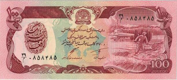Q1730 Banknote Afghanistan 100 Afghanis 1991 UNC -> Make offer