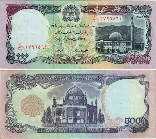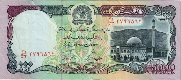Q1734 Banknote Afghanistan 5000 Afghanis Mosques 1993 -> Make offer