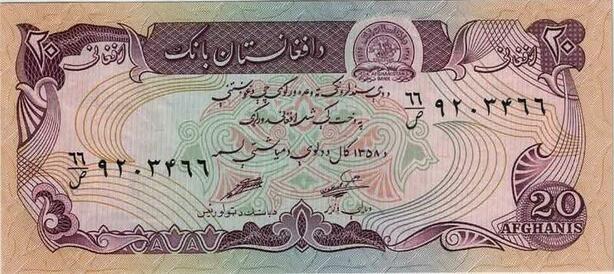 Q1735 Banknote Afghanistan 20 Afghanis Mountain 1979 UNC -> Make offer