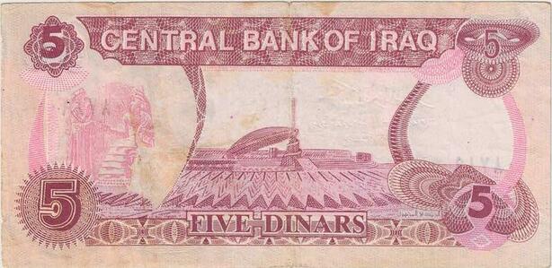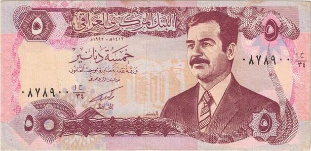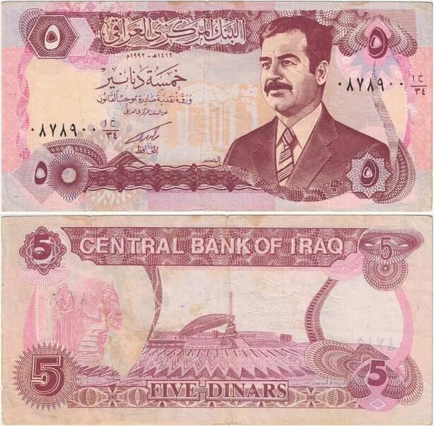 Q1755 Banknote Iraq 5 Dinars Saddam Hussein 1992 -> Make offer