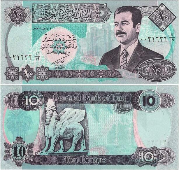 Q1757 Banknote Iraq 10 Dinars Saddam Hussein 1992 UNC -> Make offer