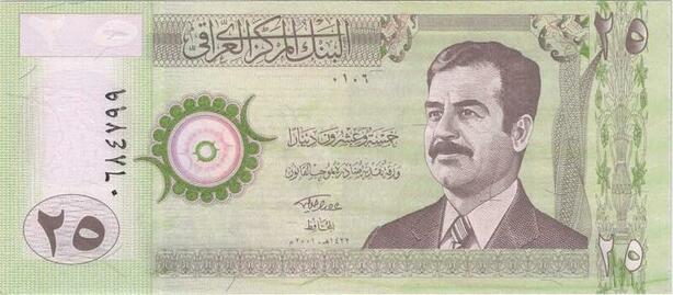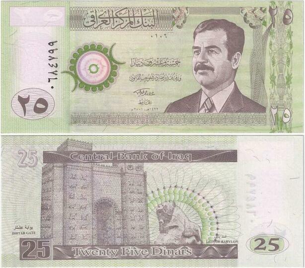 Q1761 Banknote Iraq 25 Dinars Saddam Hussein 2001 UNC -> Make offer