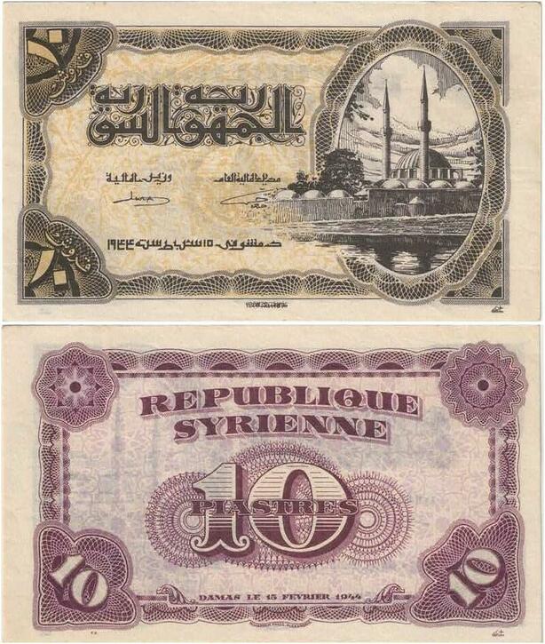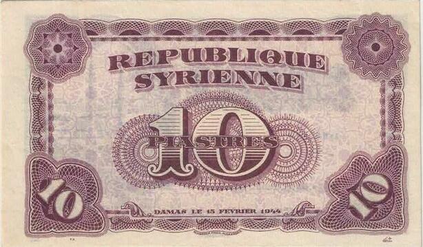 Q1770 Rare Banknote Syria 10 Piastres Syriennes 1944 AU -> Make offer