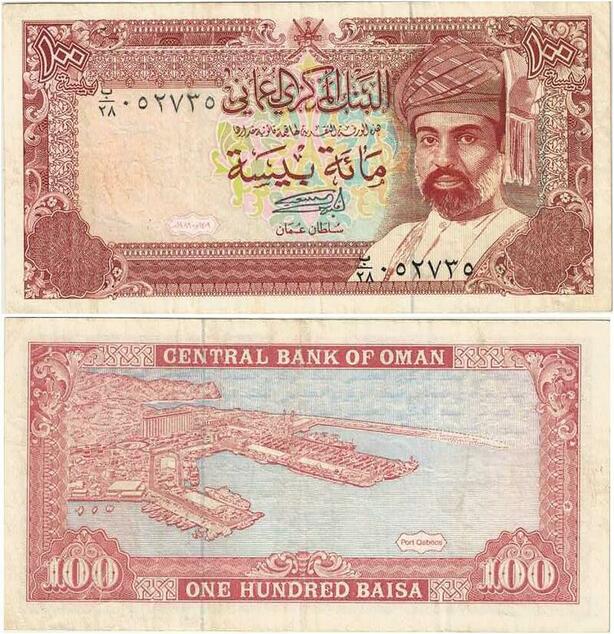 Q1796 Banknote Oman 100 Baisa Sultan Qaboos bin Sa`id 1989 -> Make offer