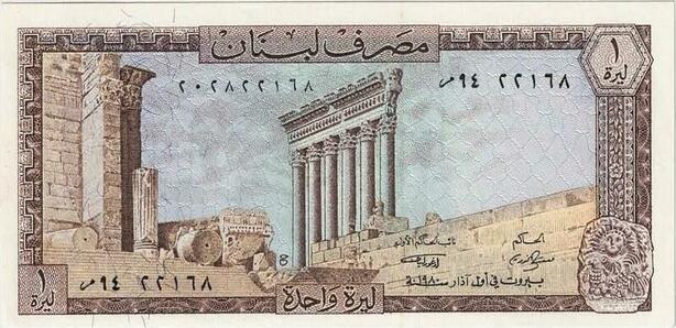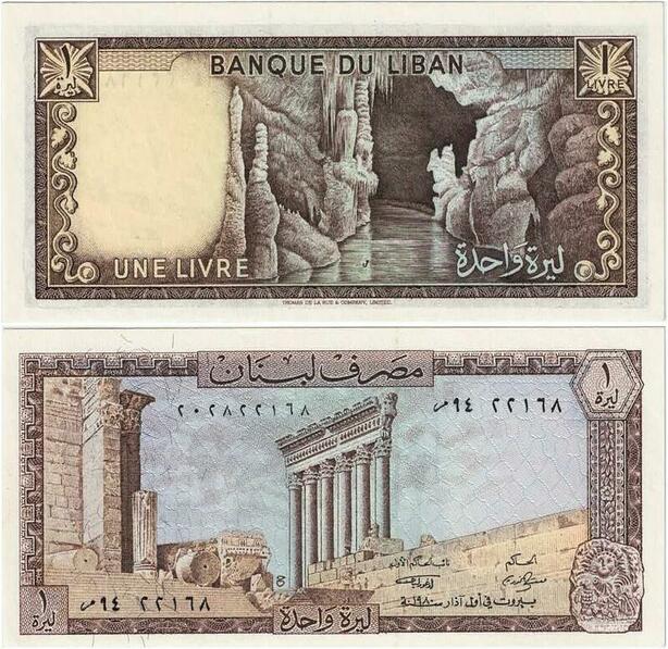 Q1797 Banknote Lebanon 1 Livre Colonnes Baalbek Grotte Jeita 1980 UNC -> M offer