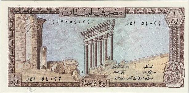 Q1800 Banknote Lebanon Liban1 Livre Colonnes Baalbek Grotte Jeita 1980 UNC