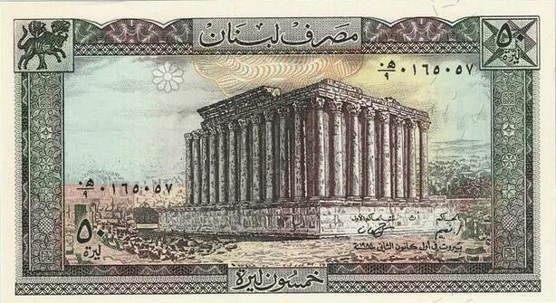 Q1810 Banknote Lebanon Liban50 Livres Temple Bacchus 1988 UNC -> Make offer