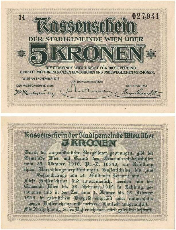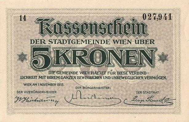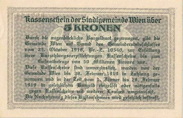Q3612 Banknote Austria Notgeld 5 Kronen 1918 Wien UNC -> Make Offer