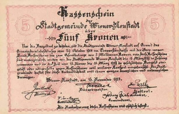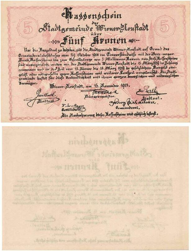 Q3614 Banknote Austria 5 Kronen Wiener Neustadt 1918 UNC -> Make Offer