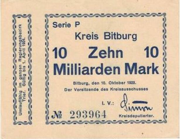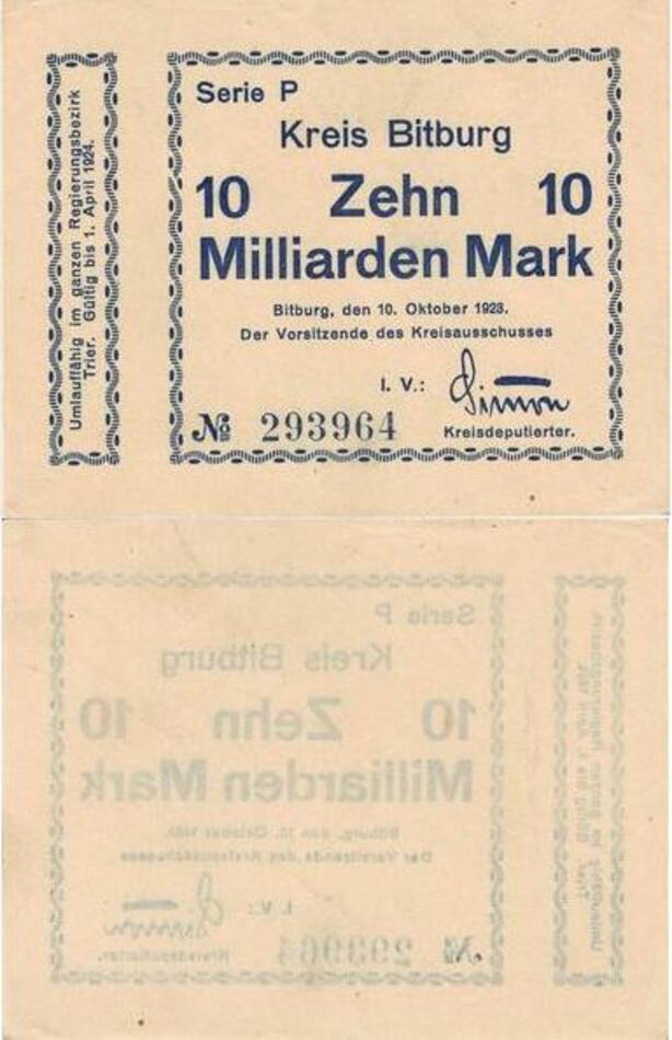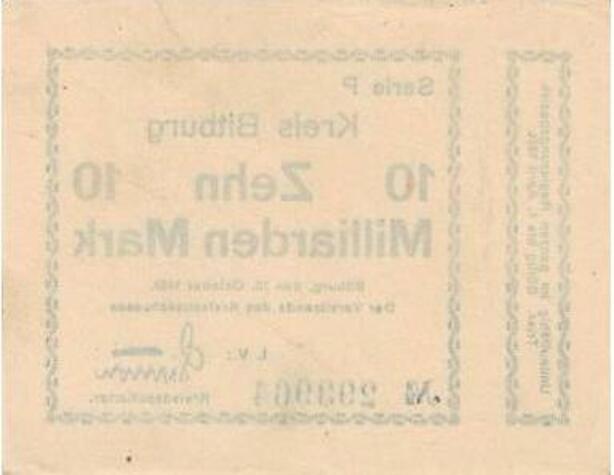 Q4108 Banknote Germany Bitburg 10 Milliarden Mark 1923 - M Offer